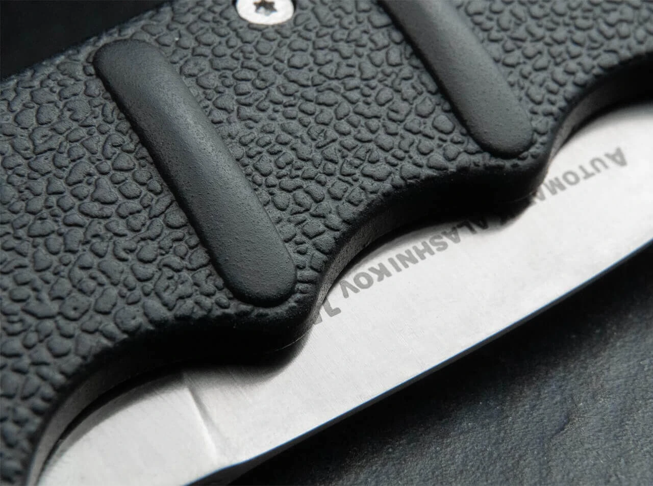 Das Böker Plus AKS-74 Black Dagger aus der Kalashnikov-Serie gehört mit Sicherheit zu den beliebtesten Modellen unseres Sortiments und wurde in den vergangenen Jahren in zahlreichen verschiedenen Varianten produziert. Der schwarze Griff aus Aluminium erinnert stark an das Bajonett des berühmten Sturmgewehrs, die erhabenen Strukturbahnen bieten zudem in jeder Situation sicheren Halt. Die unbeschichtete Spearpoint-Klinge wird aus rostfreiem D2 gefertigt und kann zusätzlich zum Druckknopf per Schiebesicherung gesichert werden. Mit Fangriemenöse und praktischem Clip (Tip-Up/r).