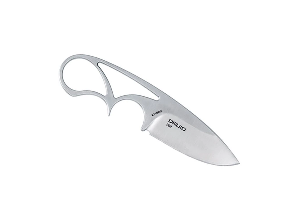 Die Besonderheit dieser Neck-Knife besteht in der ausgefeilten Ergonomie durch die Fingermulden. Dieses Design verleiht dem Druid einen verlässlichen und sicheren Griff sowie ausgezeichnete Handhabung unter den unterschiedlichsten Bedingungen. Wenn man maximale Kompaktheit erreichen will, geht dies meistens zu Lasten der Gebrauchsfähigkeit eines Messers. Das ist beim Druid Neck-Knife definitiv nicht der Fall. Verlässlichkeit ist bei der Verwendung eines Schneidwerkzeugs die oberste Tugend. Die Druid Neck-Knives bieten drei Messergrößen mit unterschiedlichen Klingenformen an, was jedem die Wahl des für ihn passenden Modells ermöglicht. Jedes Messer wird mit einer bequem zu tragenden Kydex-Scheide geliefert. Durch das geringe Gewicht dieser Kombination ist diese für ihren Träger beinahe nicht zu spüren. Die Modelle Druid 281, 282 und 283 sind eine perfekte Ergänzung zu den größeren Druid Modellen und sind ein nahezu unverzichtbarer Begleiter, wenn die Situation nur geringstes Gewicht in Neck-Trageweise erlaubt.