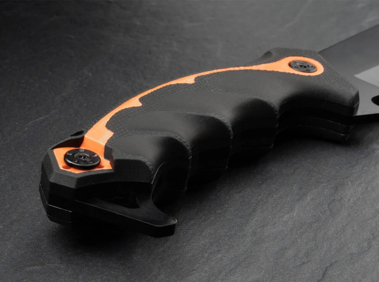 Die zuverlässige Magnum Chainsaw Backup Machete ist in dieser Version mit einer geradlinigen Klinge aus beschichtetem 420 ausgestattet, die sich insbesondere in Südamerika großer Beliebtheit erfreut. Die robuste Machete lässt ihren Besitzer auch im tropischen Regenwald nicht hängen und ist ein ernstzunehmendes Forstwerkzeug zum Entasten und zur Jungwuchspflege. Die massive Flachangelkonstruktion mit vierfach verschraubten gummierten Griffschalen liegt angenehm in der Hand, während die optimale Ausgewogenheit von Klingenstärke- und länge sowie die ergonomische Griffgestaltung ermüdungsfreies Arbeiten ermöglichen. Die Griffnase ist gleichzeitig als Fangriemenöse ausgestaltet. Eine robuste, gefütterte Nylon-Scheide mit doppelter Druckknopfsicherung schützt sowohl die Machete als auch ihren Träger.