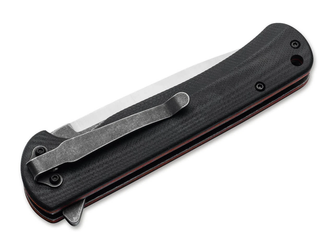Das Magnum Mobius ist ein ausgewachsener taktischer Folder, der sich mit ungewöhnlicher Eleganz in dieser Klasse präsentiert. Die Oberfläche der G10-Schalen ist dezent aber griffig strukturiert. Einen besonderen optischen Reiz setzen die beidseitigen dunkelroten Fiberlagen zwischen den Stahlplatinen und den schwarzen Schalen. Der Linerlock ist unauffällig aber gut bedienbar in den Griff integriert. Die rostfreie Edelstahlklinge aus 440A ist mit einem Flipper und einem aufwendigen Two-Tone-Finish versehenen. Mit kräftigem, großzügig dimensioniertem Clip.