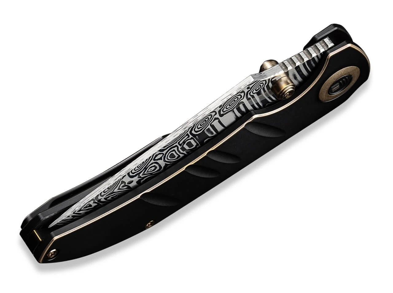 Entgegen seinem Namen erweist sich das WE Knife Riff-Raff als zuverlässiges Taschenmesser mit guten Manieren und ausgezeichneter Ausstattung. Immer zur Stelle ist die kugelgelagerte Clippoint-Klinge aus mystischem Heimskringla Damast von Damasteel, die per Daumenpin öffnet und ihrem atemberaubendem Muster hervorragend mit dem schwarzen Titangriff mit bronzefarbenen Konturen harmoniert. Jimpings am Klingenrücken erhöhen die Arbeitssicherheit des Frame Lock Folders, während die ebenfalls in Bronze gehaltenen Schrauben den glamourösen Auftritt abrunden. Mit Tip-Up Clip (r).