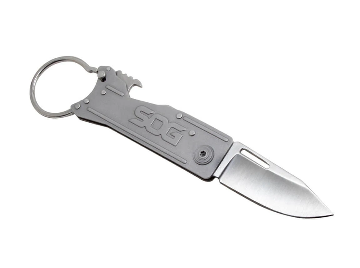Das Taschenmesser SOG KeyTron ist die Art von segensreichem Messer, das einfach immer dabei ist und garantiert nie versehentlich zuhause auf dem Tisch liegenbleibt. Der Trick ist der integral eingebaute Schlüsselring, mit dem sich das KeyTron einfach in den Schlüsselbund integrieren lässt. Die Klinge aus 5Cr15MoV wird durch einen Backlock verriegelt. Ein integrierter Flaschenöffner im Edelstahlgriff rundet die Alltagstauglichkeit des KeyTron ab.