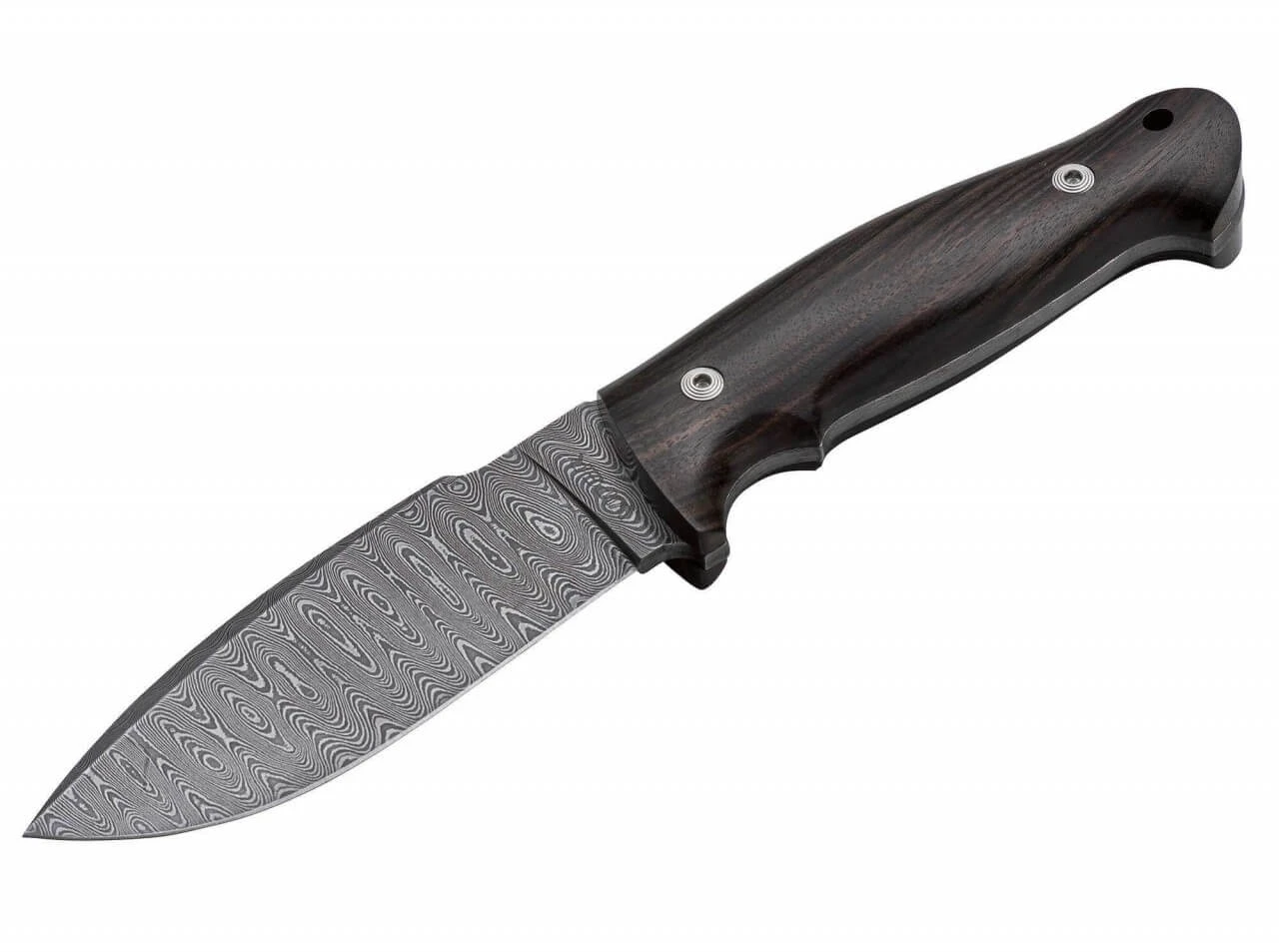 Als modernes Jagdmesser hat das Orion durch seine Praxistauglichkeit bereits viele Freunde gefunden. Die Damastversion als edles Sammler-, Jagd- und Outdoormesser ist mit einem Damast im Muster „Ladder“ ausgestattet, der mit der Beschalung aus ausgesuchtem Ebenholz ausgezeichnet harmoniert. Das Orion Damascus wird mit einer hochwertigen Lederscheide und Zertifikat ausgeliefert. Für alle Freunde dieses exklusiven Klingenmaterials eine echte Versuchung!