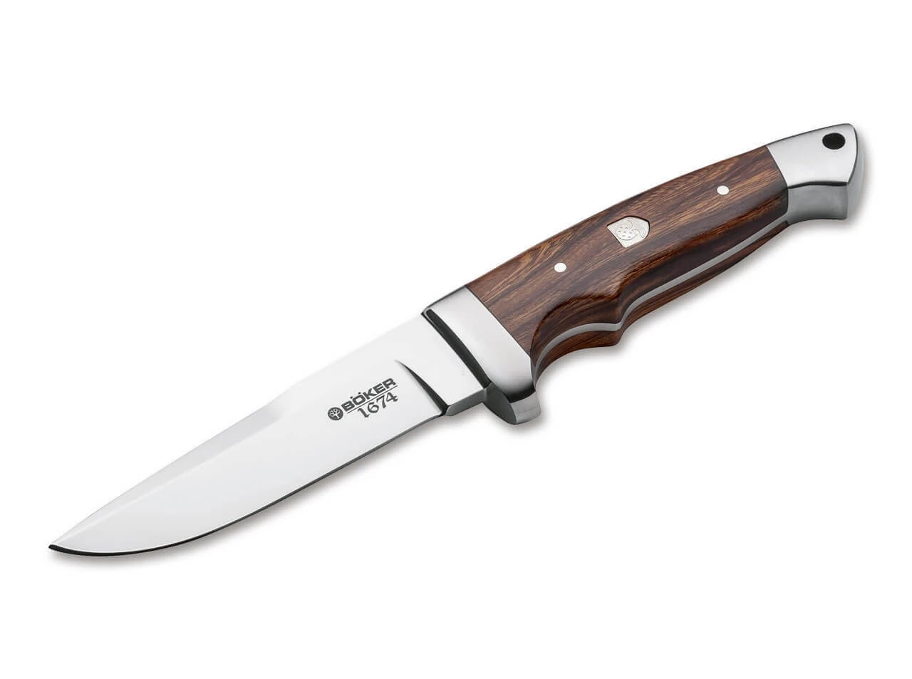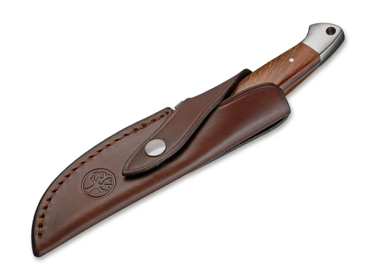 Seit unserer Gründung im Jahr 1869 durch Heinrich Böker verstehen wir uns als geschichtsbewusste Manufaktur. Mit seit jeher kontinuierlicher Firmenhistorie in Solingen fühlen wir uns dem Erbe und unserer Tradition ebenso verpflichtet wie den Themen Innovation und moderne Technologie. Die außergewöhnlich vielfältige Modellpalette unserer Solinger Manufaktur unterstreicht diese Unternehmensphilosophie. 1865 wurde von Robert Böker, einem Cousin von Heinrich, Böker Mexico gegründet. Das Unternehmen befindet sich auch heute noch in Besitz der Familie Böker und wird in 4. Generation geführt. Anlässlich des 150-jährigen Jubiläums von Böker Mexico wurden uns vor Ort hochinteressante, uns bis dato unbekannte Unterlagen zugänglich gemacht, die ein neues Licht auf die Geschichte der Marke Böker werfen. Zurück in Solingen, haben wir uns in Zusammenarbeit mit Historikern aus dem Bergischen Land unverzüglich an Recherchearbeiten gemacht und konnten verifizieren, dass die Familie Böker das Wappen mit dem berühmten Baum erstmals im Jahr 1674 als „Hausmarke“ eintragen ließ. Dieses historische Wappen zeigt einen grünen Baum auf silberfarbenen Grund am Ufer eines blauen Flusses. Wir verstehen dies als direkten Hinweis auf die schon damals durch Wasserkraft angetriebenen Schleifsteine. Die Geschichte des Böker Baums ist also nachweislich über 343 Jahre alt! Selbstverständlich haben wir diese Entdeckung zum Anlass genommen eine Sonderserie zu konzipieren, um das Jahr der Markeneintragung gebührend zu feiern. Die Griffschalen werden aus edlem zertifiziert Importiertem Wüsteneisenholz gefertigt. Die blaugepließteten Klingen tragen das traditionelle Solinger Klingenfinish. Die Auswahl der Modelle umfasst Klassiker ebenso wie bedeutende Modelle der jüngeren Geschichte. Jedes Messer ist streng limitiert auf 343 Exemplare. Auslieferung mit Zertifikat und individueller Seriennummer.